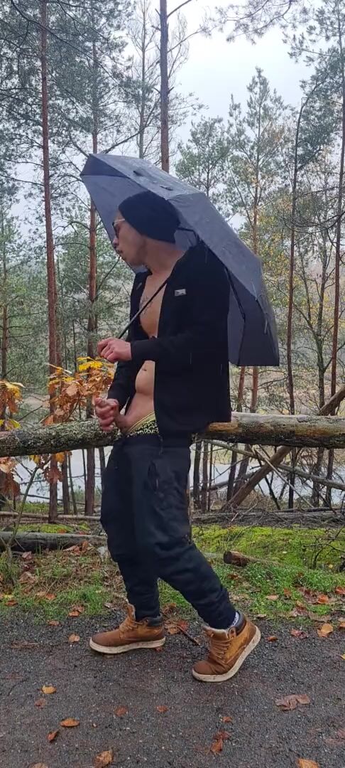 Ich habe mir im wald bei regen ein runter geholt