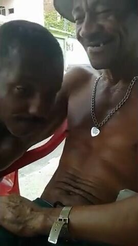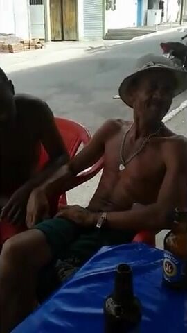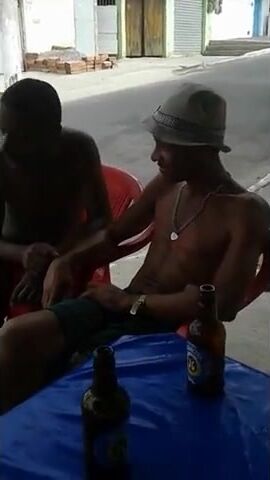 Description: Cachaceiro mama peito do outro no bar