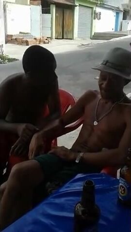 Cachaceiro mama peito do outro no bar