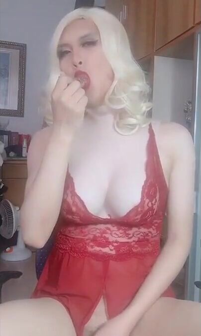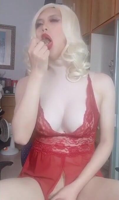 Sissy Maggie - cum with fake breast