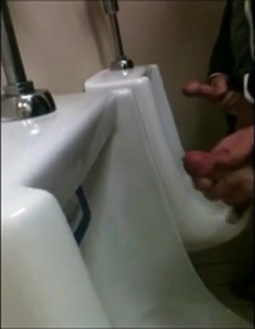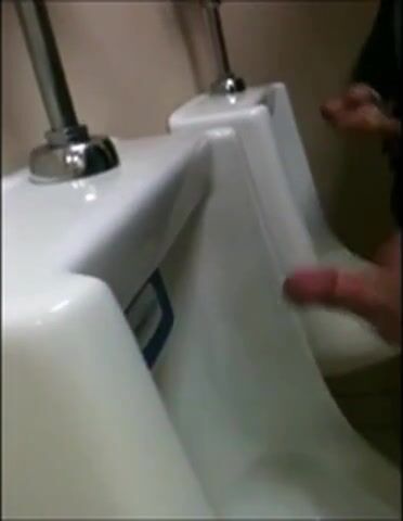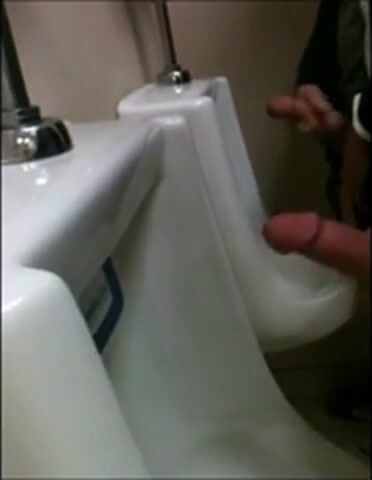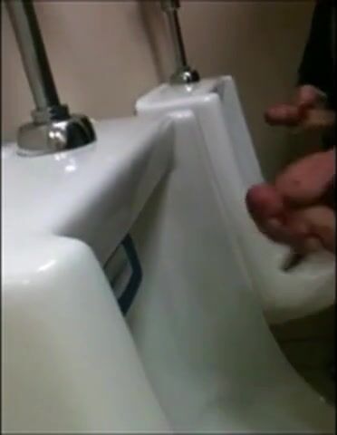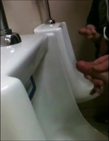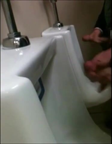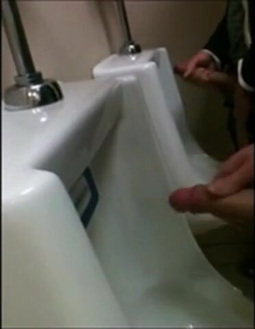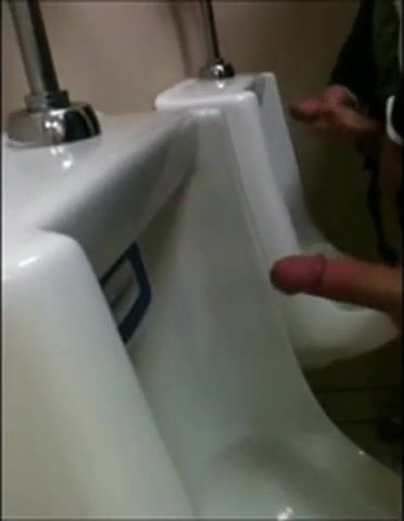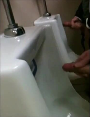 two slim dicks getting wanked at the urinals