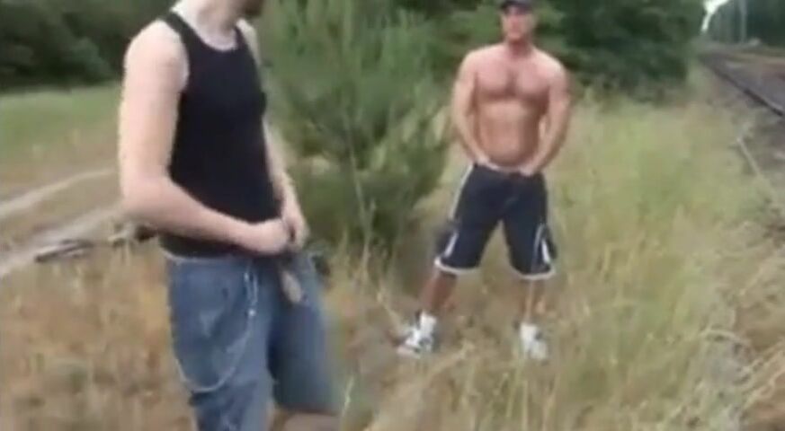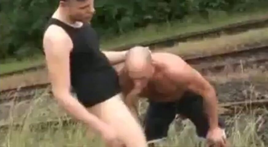 Description: Two burly, bearded men, clearly amateurs, are passionately fucking outdoors, on a secluded railroad track, enjoying a raw, primal encounter with nature as their witness.