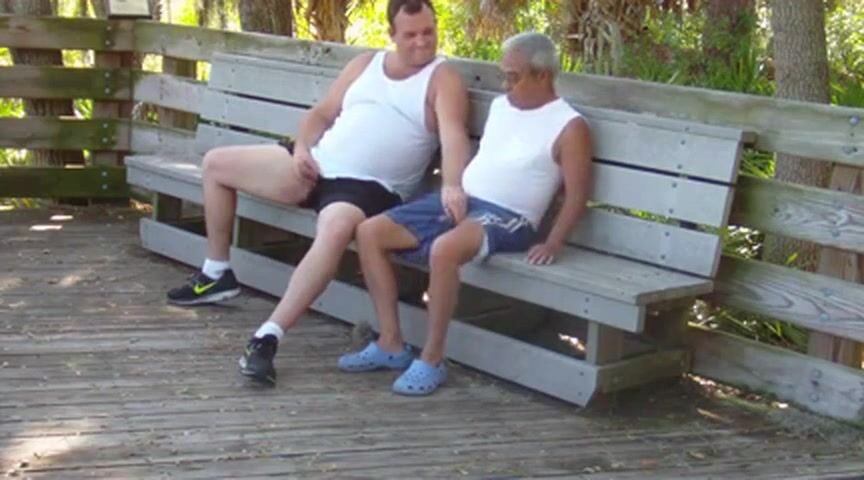 Description: Two silver daddies enjoy a passionate outdoor encounter in a public park, their amateur performance is a display of raw, unfiltered desire and lust.