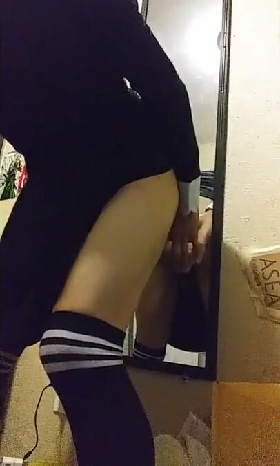 Latin Twink Crossdresser Rides His Toy