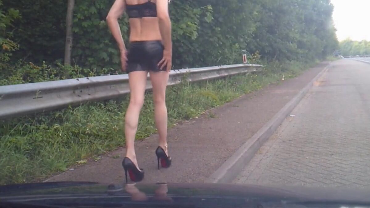 A horny cross-dressing amateur ventures outdoors, exposing their kinky, sexy side. They embrace their unique style, teasing and pleasing in a thrilling, naughty display.