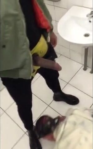 Description: Twink kneeling waiting for BBC daddy piss
