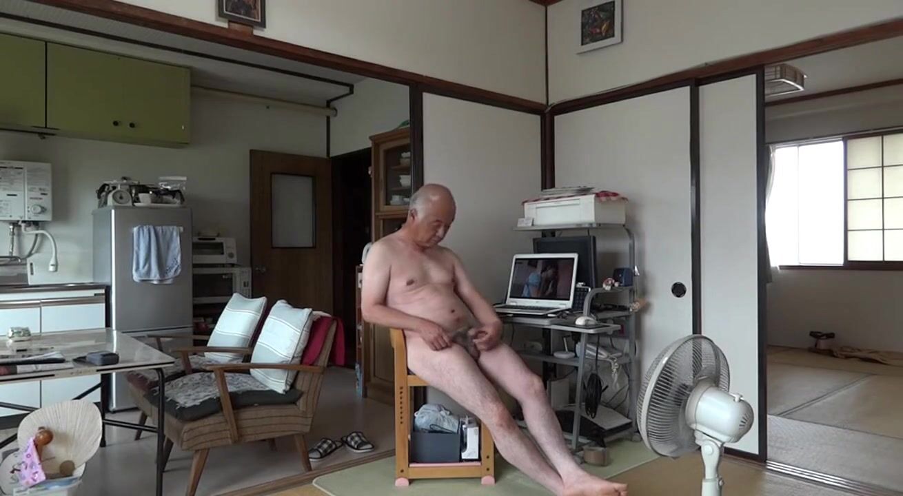 Mature Japanese Gay Man Strokes Small Cock and Cums