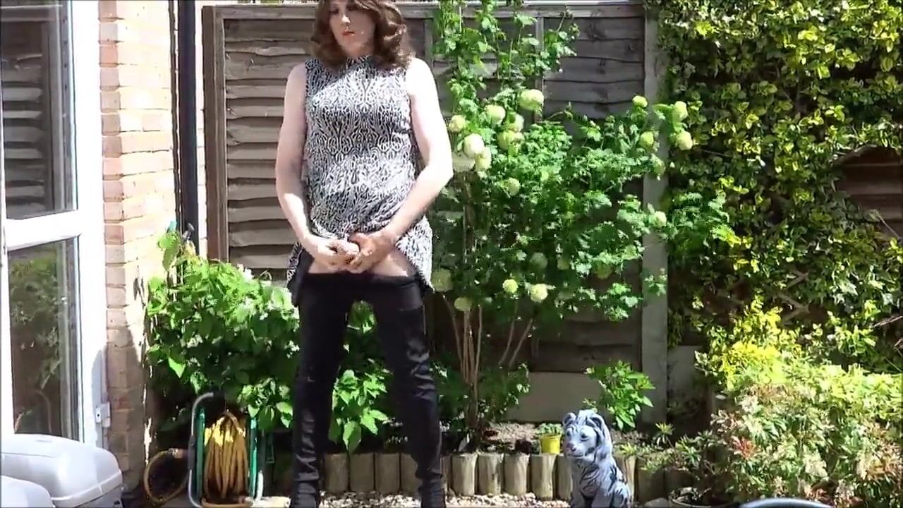 Thigh-booted Crossdresser Strokes Outdoors 2