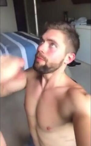 Description: Watch this amateur hunk take a massive cock down his throat! He gags and deepthroats like a pro, milking every last drop of spunk from that big cock.