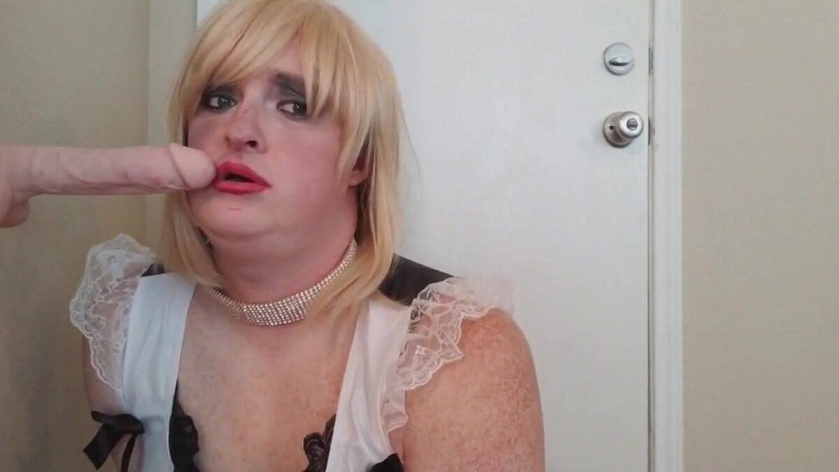 Description: Blonde sissy sucks her toy and talks dirty.