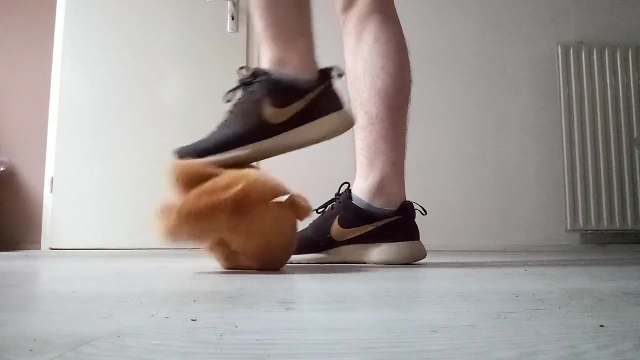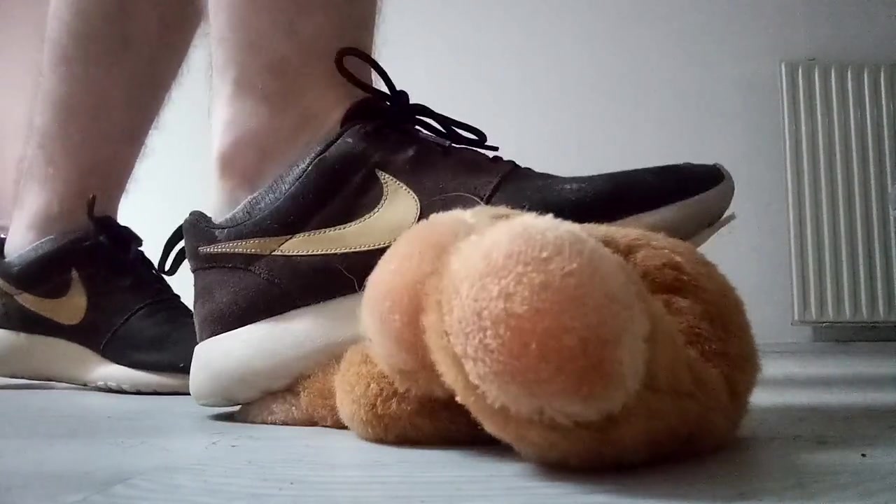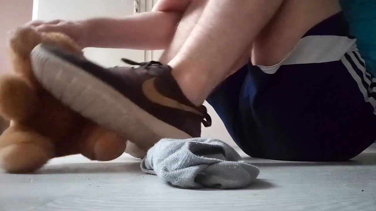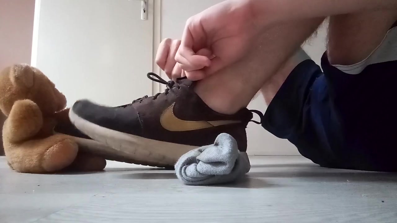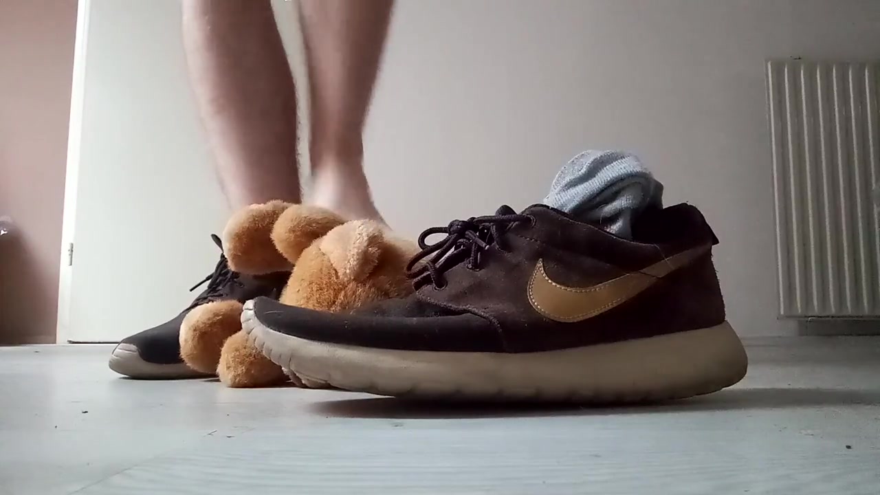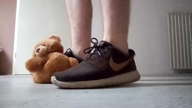 Teenager Nike Roshe Run Shoeplay with Hairy Man Teddy