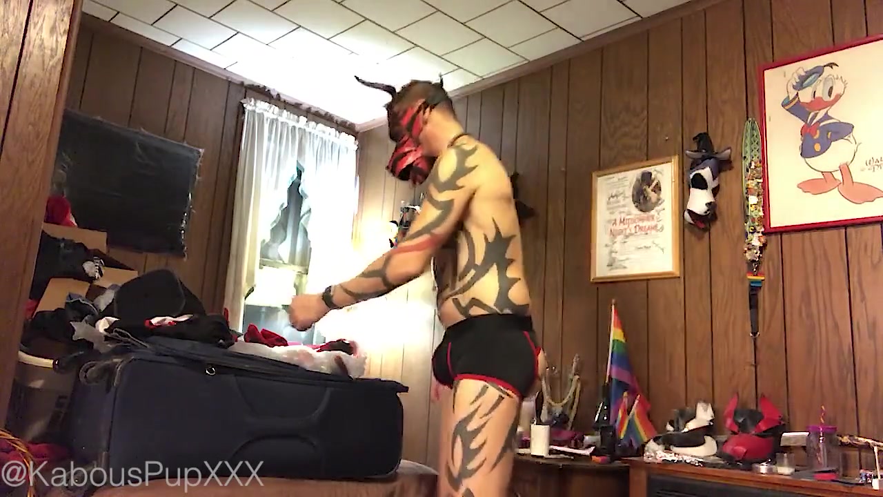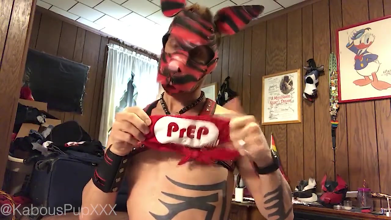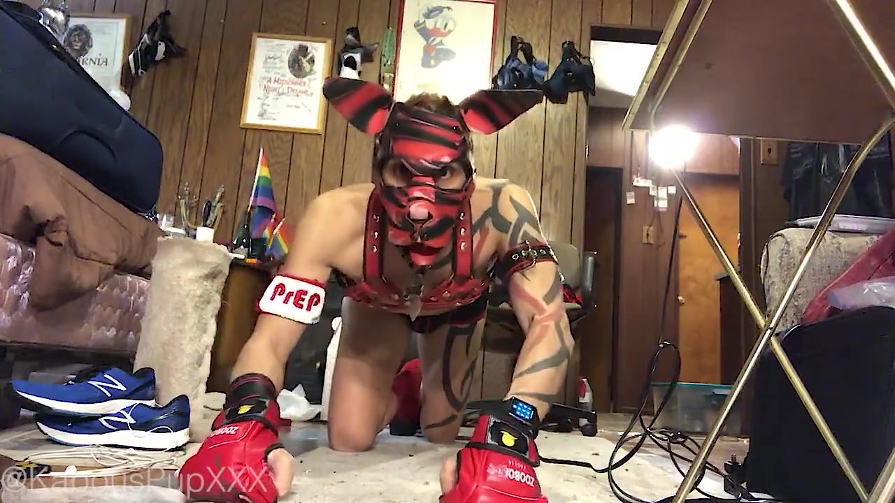 Dressing up the Humanpuppy for Playtime (web cam Flash, Frisky, no Orgy)