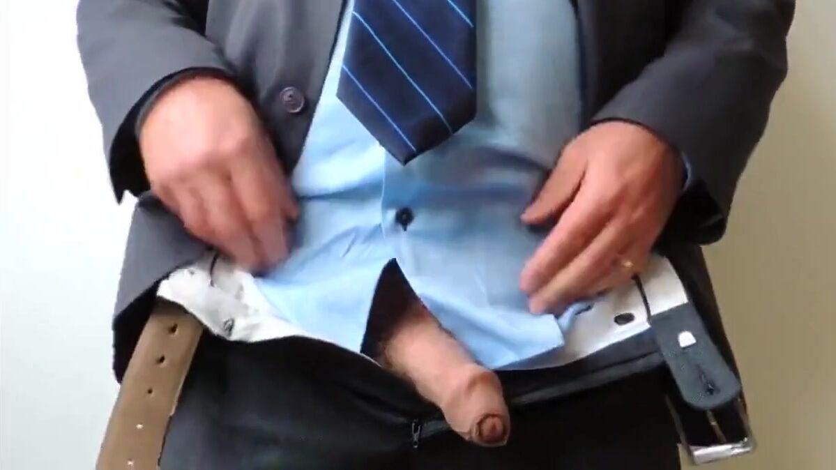Description: A hairy, mature amateur daddy, dressed in a suit, strokes his thick cock and shoots a hot load. Bear lovers will enjoy this one!