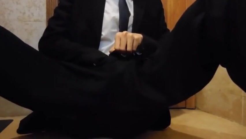 Bareback Student in the WC Takes a Cum Tribute Handjob 2