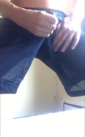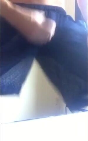 Description: A horny amateur man teases himself by stroking his manhood through his pants, before releasing himself and masturbating to a powerful climax.