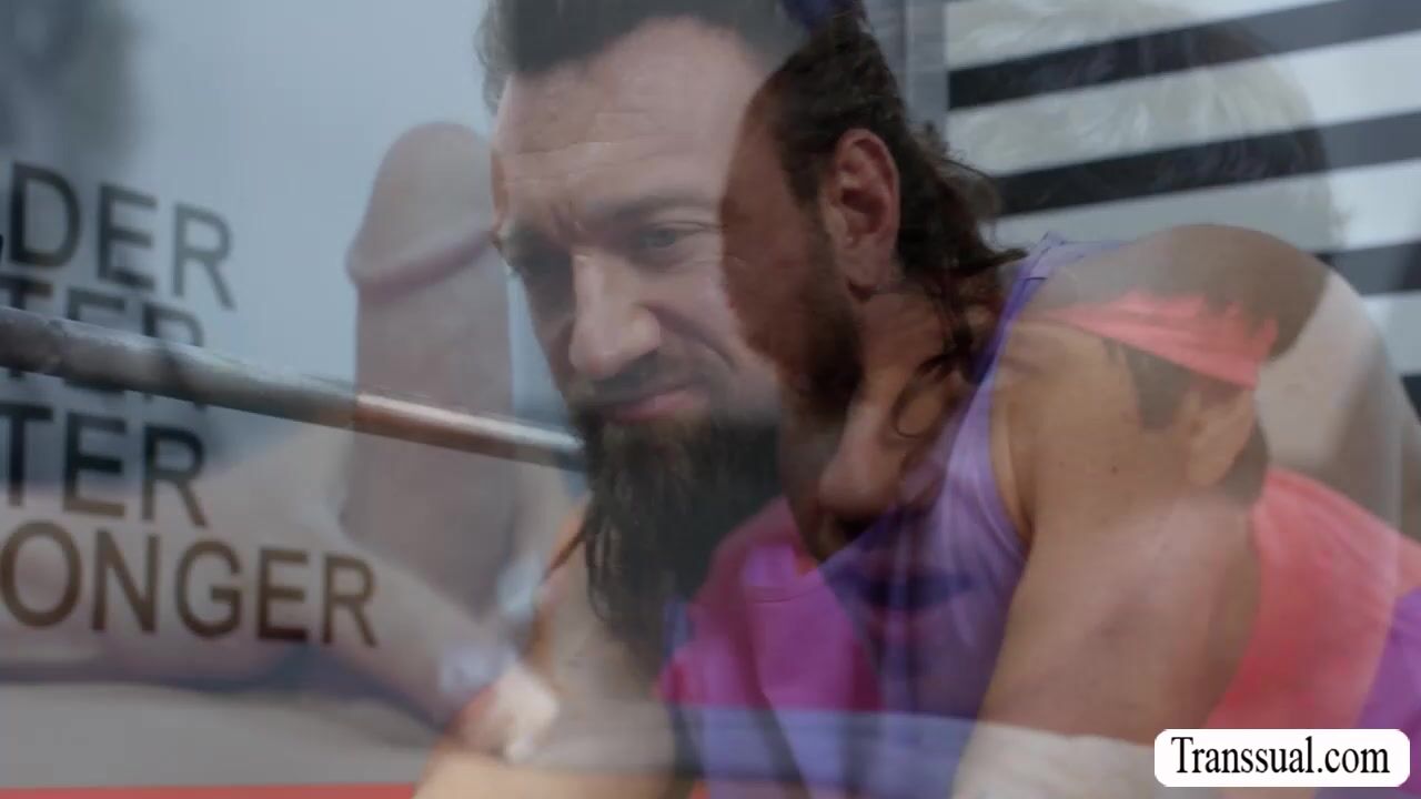 Busty shemale is in the gym with this two dude.After that,they start sucking each others hard big cock and then bareback fuck their wet asses so deep and fucking hard.Go to Transsual.com for the full video of this and more.